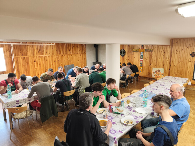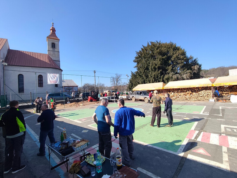 Počas dopoludnia sa na brigáde vystriedalo približne 30 mužov, mládencov a chlapcov z našej farnosti a tiež z bývalej filiálky, z Tuchyne. Práce sa začali o 8:00 hodine a v priateľskej a pracovitej atmosfére pokračovali až do obeda. Spoločne sa podarilo spracovať všetko pripravené drevo aj odrezky – drevo bolo narezané, poštiepané a starostlivo poukladané, aby mohlo počas nasledujúcich mesiacov dobre preschnúť.