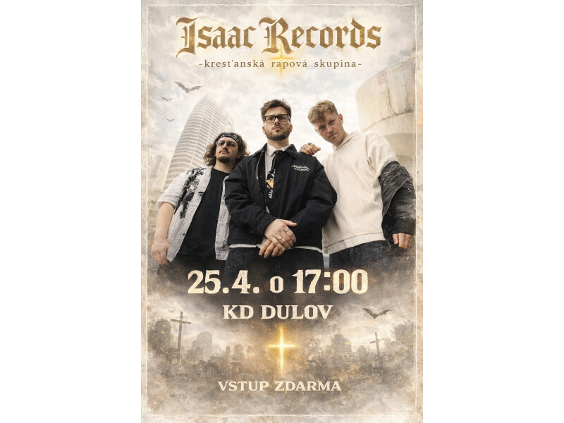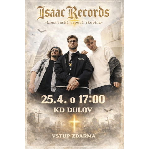 Pozývame všetkých birmovancov, ale aj mladých z našej farnosti na koncert kresťanskej rapovej skupiny ISAAC RECORDS, ktorý sa uskutoční v sobotu, 25.04.2026 v Kultúrnom dome v Dulove so začiatkom o 17:00 hod. Vstup je zdarma.
