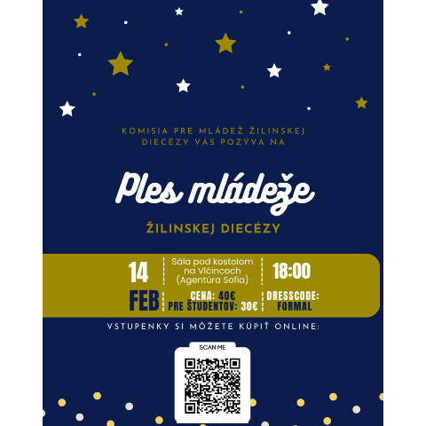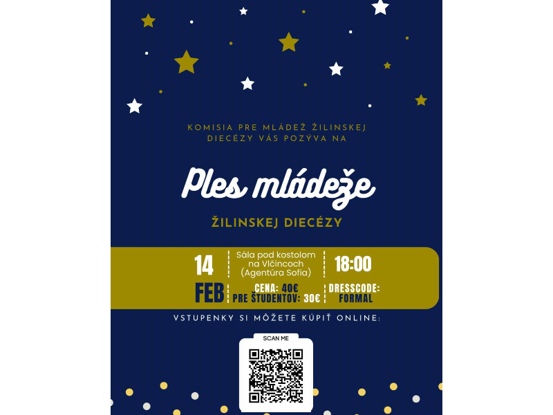 Pozývame mladých vo veku od 16 do 26 rokov na PLES MLÁDEŽE ŽILINSKEJ DIECÉZY, ktorý sa uskutoční v piatok, 14.02.2025 v Žiline.