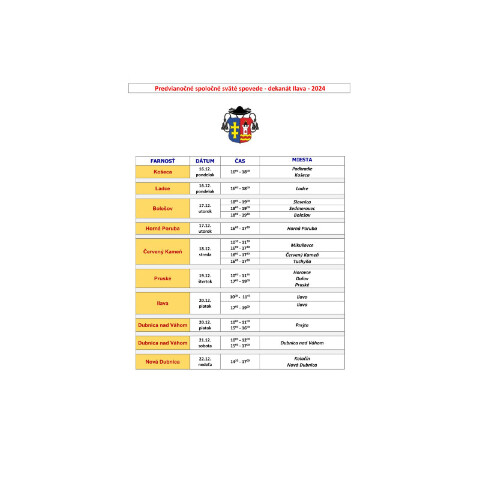 V prílohe si môžete pozrieť miesta a časy spoločných predvianočných svätých spovedí v dekanáte Ilava (príloha oznamu ako pdf súbor) alebo môžete kliknúť na obrázok.