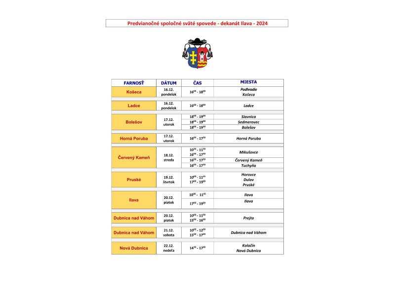 Spovedanie 2024 Vianoce dekanat Ilava