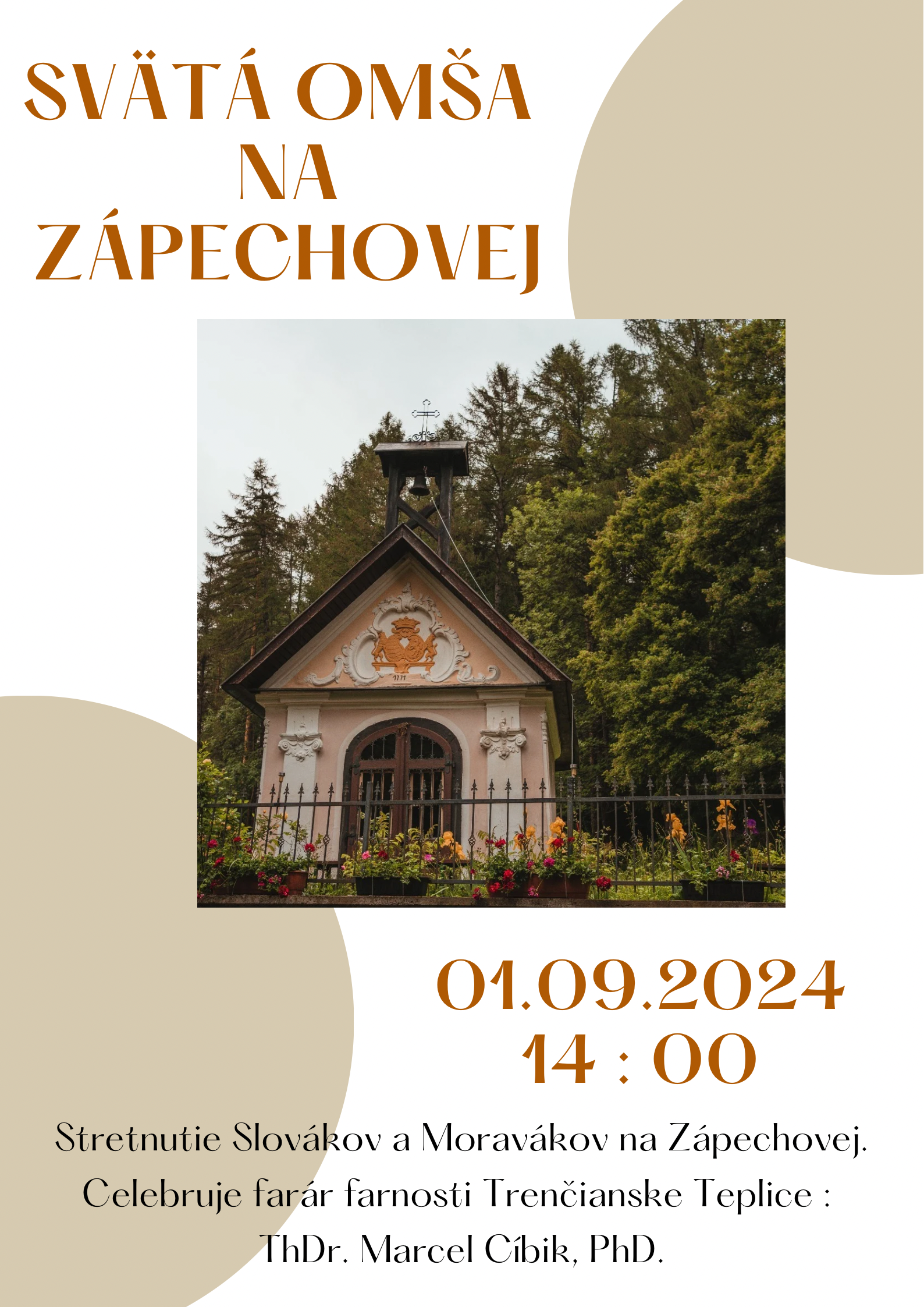 Farnosť Červený Kameň pozýva na sv. omšu pri kaplnke na Zápechovej, ktorá sa uskutoční v nedeľu, 01.09.2024 o 14:00 hod.